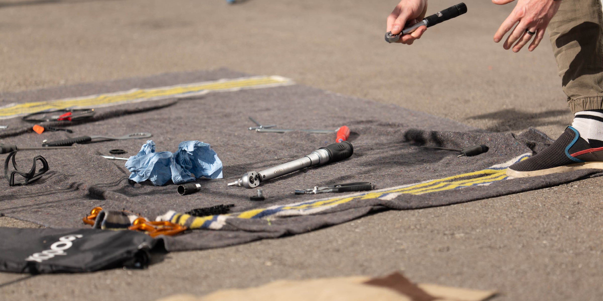 - Posizionare la bicicletta in modo sicuro su un cavalletto da lavoro, assicurandosi di avere lo spazio necessario per lavorare intorno alla bicicletta.